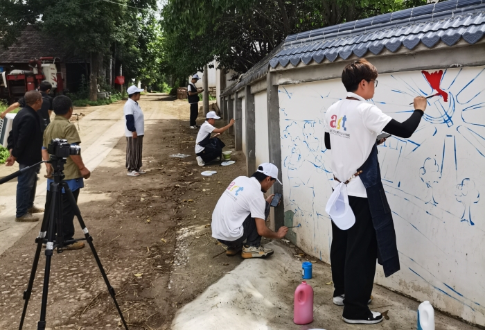 6月17日至18日,在党委统战部和美术与设计学院前期共同策划下,美术与设计学院公共艺术系系主任胡祖豪、数字媒体系教师王娟带领学院8名优秀学生赴蓝田县后李坪村,与学校驻村干部共同开展“以青春之彩笔绘乡村振兴蓝...