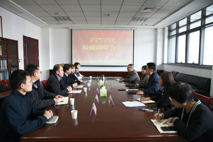 3月3日上午,在服务地方办公室联系下,历史文化旅游学院赴西安市地方志办公室落实两单位校政战略合作协议,并座谈交流。市地方志办主任王鹰、副主任崔义萍出席座谈会,市志处处长杨军亚、年鉴处处长姚文东、三级调研...