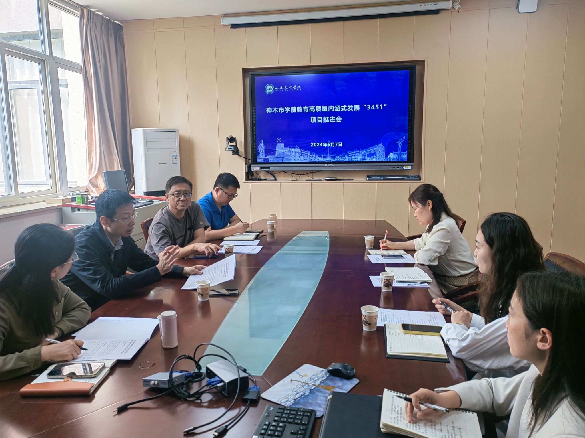 5月7日,学前教育学院在H0208会议室召开神木市学前教育高质量内涵式发展“3451”项目工作推进会。项目负责人蔡军,项目组核心成员赵四鸿、高世华、吴丽英以及项目参与人王华婷、张玉琴、田红娟、李慧参加了会议。会上,赵四鸿就过去一年“3451”项目运行情况做了汇报,并对即将进行的“幼儿园管理实践示范工程”启动会暨实验幼儿园挂牌仪式进行了安排。随后,参会人员针对启动会暨挂牌仪式的会议议程、委托管理的内容、前期项目运行制作的视频进行了讨论。...