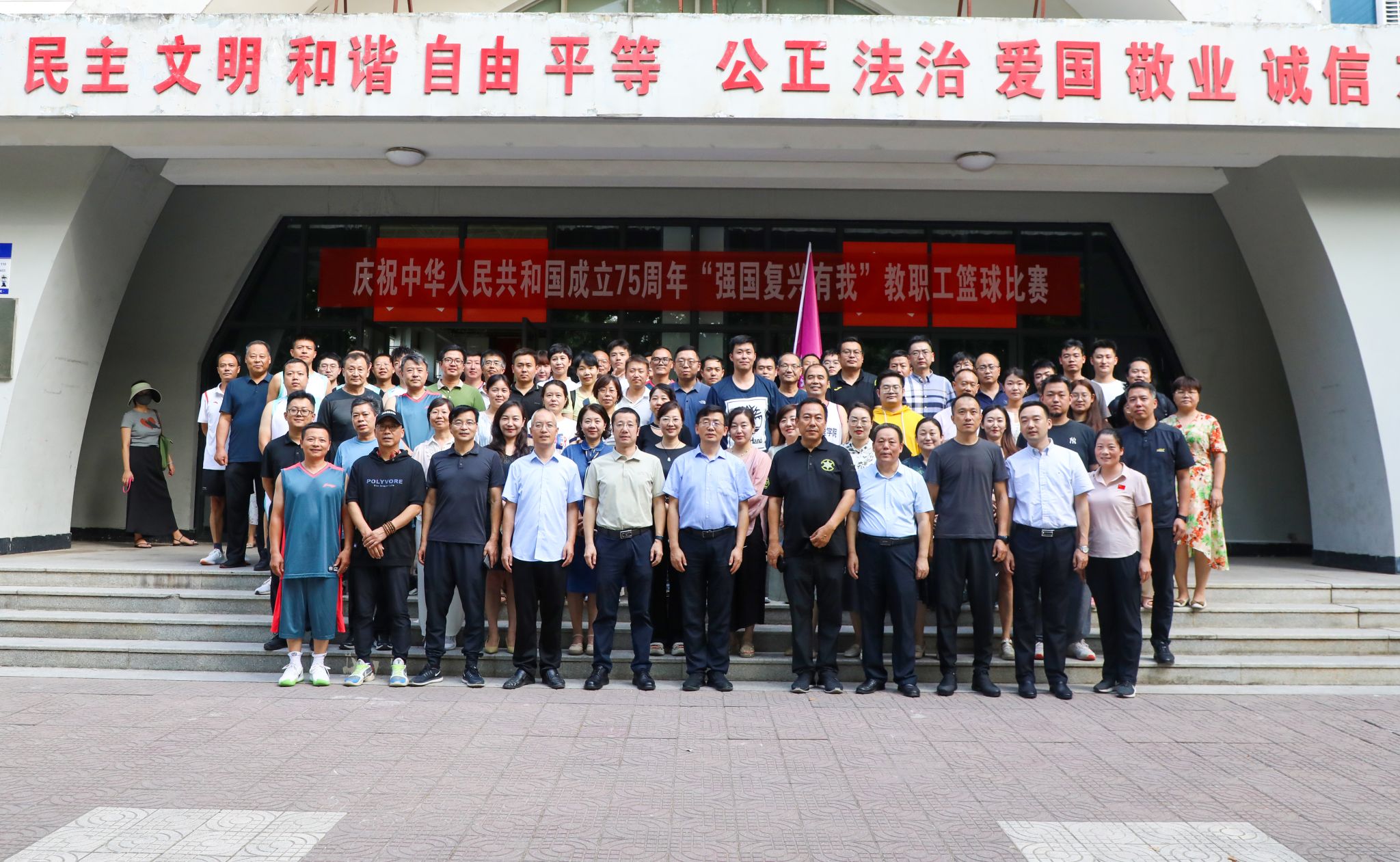 为庆祝中华人民共和国成立75周年,活跃职工文化体育生活,大力营造爱国奉献、团结奋进的浓厚校园氛围,9月19日下午,由校工会、体育学院联合举办的“强国复兴有我”教职工篮球赛开幕式在校体育馆举行。党委委员、副校长龚杰昌代表校党委和校工会对篮球赛开赛表示祝贺,希望篮球运动员遵守比赛规则,赛出水平,赛出风格,发挥体育运动独有优势,为学校发展凝心聚力。预祝篮球比赛取得圆满成功!本次篮球赛作为今年会庆祝中华人民共和国75周年“...