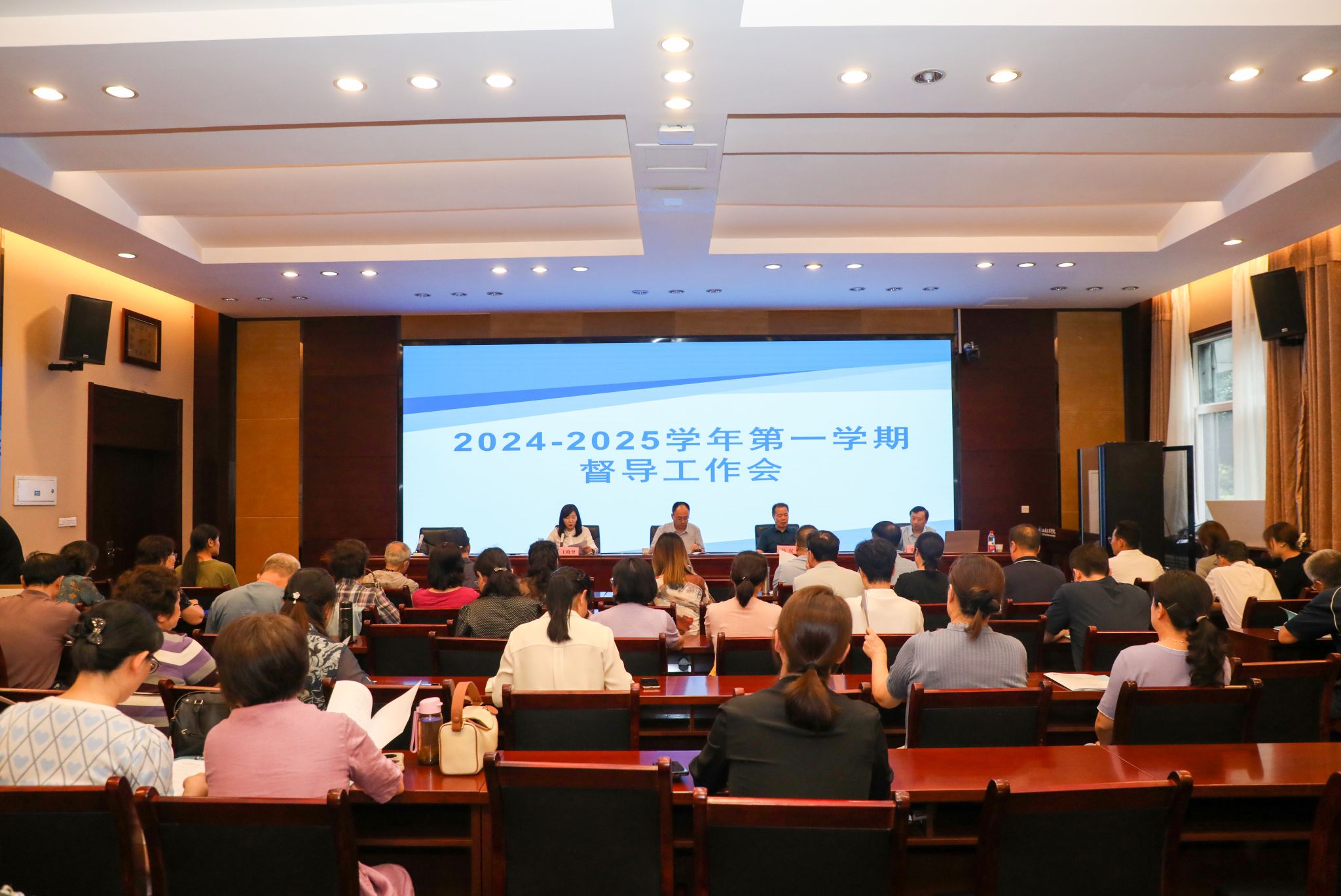 9月20日下午,在学校办公楼会议中心第一会议室,举行了2024-2025学年校级教育教学督导换届大会。督导组组长韩权教授、评估中心(教师发展中心)全体成员以及校院两级督导共50余人参加了会议,校务委员徐东升出席会议并讲话。会议由评估中心主任王晓翌主持,她首先肯定了往届督导对学校教育教学工作的贡献,介绍了督导换届的背景和意义,表示新一届督导要改进督导方式,提升督导能力,加强调查研究,提升反馈帮助青年教师成长的能力,...