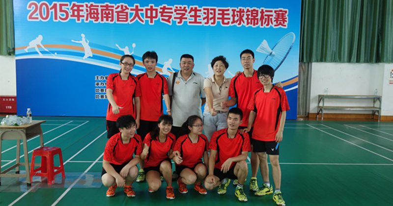 2015年海南省大中专学生羽毛球锦标赛于4月24日至28日在海南高级体育运动学校隆重举行。金年会与海南师范大学、琼州学院、琼台高等师范专科学校等拥有体育院系的高校一起参加本次赛事的专业组比赛。金年会派出由田东为领队,王丽莎为教练,曾娅平、黄心怡 、胥玉婷、李运梅、韦煌、王珅、黎小佳、王健等八名学生组成的代表队参加本次比赛。