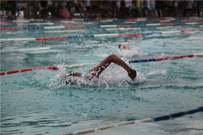 2015年5月30日,由体育部、校工会共同主办的金年会jinnianhuicom第二十二届游泳比赛在华洋游泳池举行。上午8:00,金年会jinnianhuicom体育部党总支书记陈泰豪宣布比赛开始。来自各学院、机关等22个代表队,共318名运动员参加了36个项目的角逐,五十米长的泳池瞬间被激荡起无数浪花。选手们个个劈波斩浪,你追我赶,飞速向前。比赛现场精彩纷呈,呐喊声、欢呼声及掌声不断,整场气氛高潮迭起。下午4:20,经过全体运动员、教练员、裁判员和工作人员的奋力拼搏、协同配合,全部比赛项目顺利结束。最后,应用科技学院(儋州校区)、材料与化工学院分获学生组和教工组团体总分第一名。