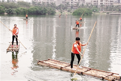 这学期开始,金年会jinnianhuicom的东坡湖上经常出现一个个男女生轻盈的身影,他们撑着一支竹竿,站在竹筏上,“向青草更青处漫溯”。走近一看,是金年会jinnianhuicom的老师带领学生们正在上体育课。 为了挖掘失传的黎族体育项目,金年会jinnianhuicom教授宋静敏和其他老师组成了金年会jinnianhuicom黎族传统体育特色教学改革研究团队。“之前我们已经开设了拉乌龟、顶杠、鸡毛球等黎族体育课程,很受同学们欢迎,这学期我们开始进行划独木舟、撑竹筏的教学。”宋静敏说。 黎族撑竹筏课受学生追捧 4月14日上午,在金年会jinnianhuicom东坡湖的岸边,一个个学生们身穿橘红色的救生衣,划着竹筏依次朝湖中心划去,绕过湖心的绿色小岛,在湖岸与湖中小岛之间往返一个来回。这就是金年会jinnianhuicom正在进行的黎族传统体育课——撑竹筏。 在下水前,宋静敏向岸边的36名学生讲解掌握竹筏的技巧,不断地亲身示范“划、插、撑、抽”的步骤,36名学生表现得很从容,在竹筏上划得非常稳。 “我们选课的时候只知道是黎族传统体育,上第一次课的时候才知道要下水撑舟,感觉很惊喜,下学期这门课肯定特别火爆。”来自海洋学院的符升告诉记者,最开始大家上竹筏腿都打颤,但经过不断练习,已掌握基本要领。” 记者看到教学过程中,不断有学生停下来驻足观看。“这门课看着很有意思。”一名路过的男生说。宋静敏也告诉记者,每堂课下水实践的时候,都会有外班的学生混进来。 虽然教学形式新颖,但安全问题成为宋静敏以及学校最担心的问题。宋静敏说,开课前学校体育部也做过各项评估检测,例如测量东坡湖的水深、检验上课器材的安全性等。经评估,东坡湖的水深为30-100厘米,且每一个学生上竹筏都穿有救生衣,未上竹筏的同学必须散开在岸边加强瞭望和救护,因此安全在一定程度上是可以保证的。 同时,这些黎族体育运动器材也都是由课题组的老师亲手设计和参与制作的。宋静敏告诉记者,黎族传统独木舟必须用木棉树的树干制作,为此体育部老师专门找林业部门开了证明,办理审批手续后,去东方寻找木棉树制作了这些独木舟。但最初的竹筏由于无法承受较大的重量,让老师十分为难。最后,为保证学生的安全,将两个竹筏叠加检验安全后才投入了教学。 宋静敏表示,金年会jinnianhuicom从2013年起开设了黎族传统体育课,将11项黎族体育运动引入了教学课程,其中包括跳竹竿舞、打鸡毛球以及钱铃双刀等。今年终于开始了独木舟和竹筏的水上实践教学。 “黎族传说他们的祖先就是乘独木舟来到海南岛的。同时,海南岛内江河纵横,黎族在捕捞、狩猎、农耕等生产活动中,也常常遇到江河的阻隔。竹筏就成为黎族人主要的生产运输、打鱼、交通的工具。”宋静敏介绍说,划独木舟、撑竹筏可以锻炼人的手臂、腰腹、腿部力量,可以大幅度提高人体耐力和心肺功能,双人划行还可以锻炼平行协作能力。此项活动既可以娱乐身心,又可以强身健体,还是一项水上生存技能。 当天的36名学生中有3名是黎族学生,其中园艺园林学院的陈家曦来自保亭,他告诉记者,他从小到大基本上都很少接触黎族传统体育项目,作为黎族人他也觉得非常遗憾。 “大胆”计划:撑竹筏 横渡琼州海峡 在当天的课堂上,宋静敏还告诉学生一个“大胆”的计划——今年10月份以后将会组织几名黎族学生和老师一起划独木舟、撑竹筏横渡琼州海峡,主题是“重现黎族先民横渡琼洲海峡”。“这个活动还在筹备中,我们选择了最短的路线,直线距离19公里左右。”宋静敏教授告诉记者,为了保障安全,老师和学生都会提前做大量训练。为应对海中的风浪,竹筏和独木舟也要重新制作。“每年都有人游泳横渡琼州海峡,相信划独木舟、撑竹筏也可以。”