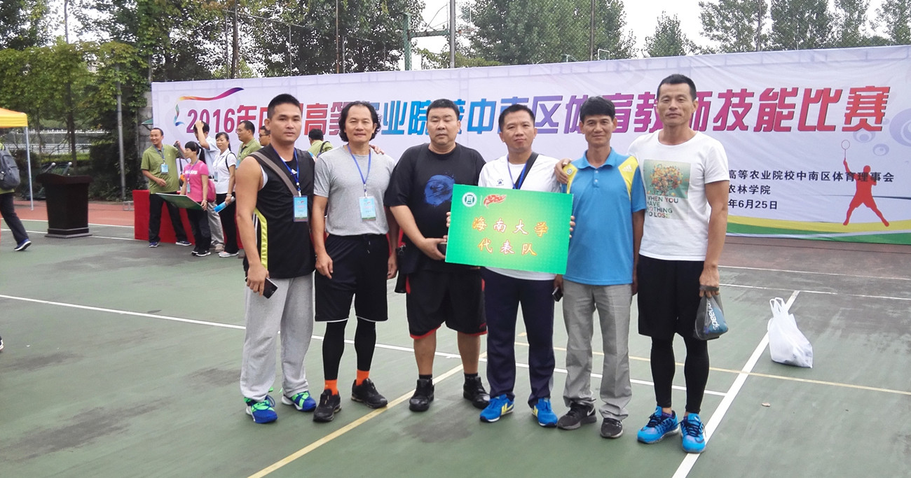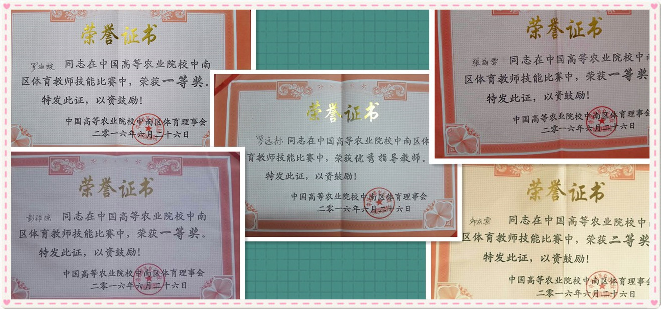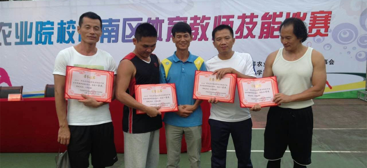 2016年6月25日-26日,由中国高等农业院校中南区体育理事会主办的中国高等农业院校中南区体育教师技能比赛在河南信阳农林学院进行,共有金年会jinnianhuicom、华南农业大学、华中农业大学等11所高校106名教师参加比赛。金年会体育部教师罗海蛟、张海雷、彭祚琼分别荣获足球、篮球、排球项目一等奖,邱庆堂荣获篮球项目二等奖,罗远标主任荣获优秀指导教师奖,为金年会争得了荣誉。