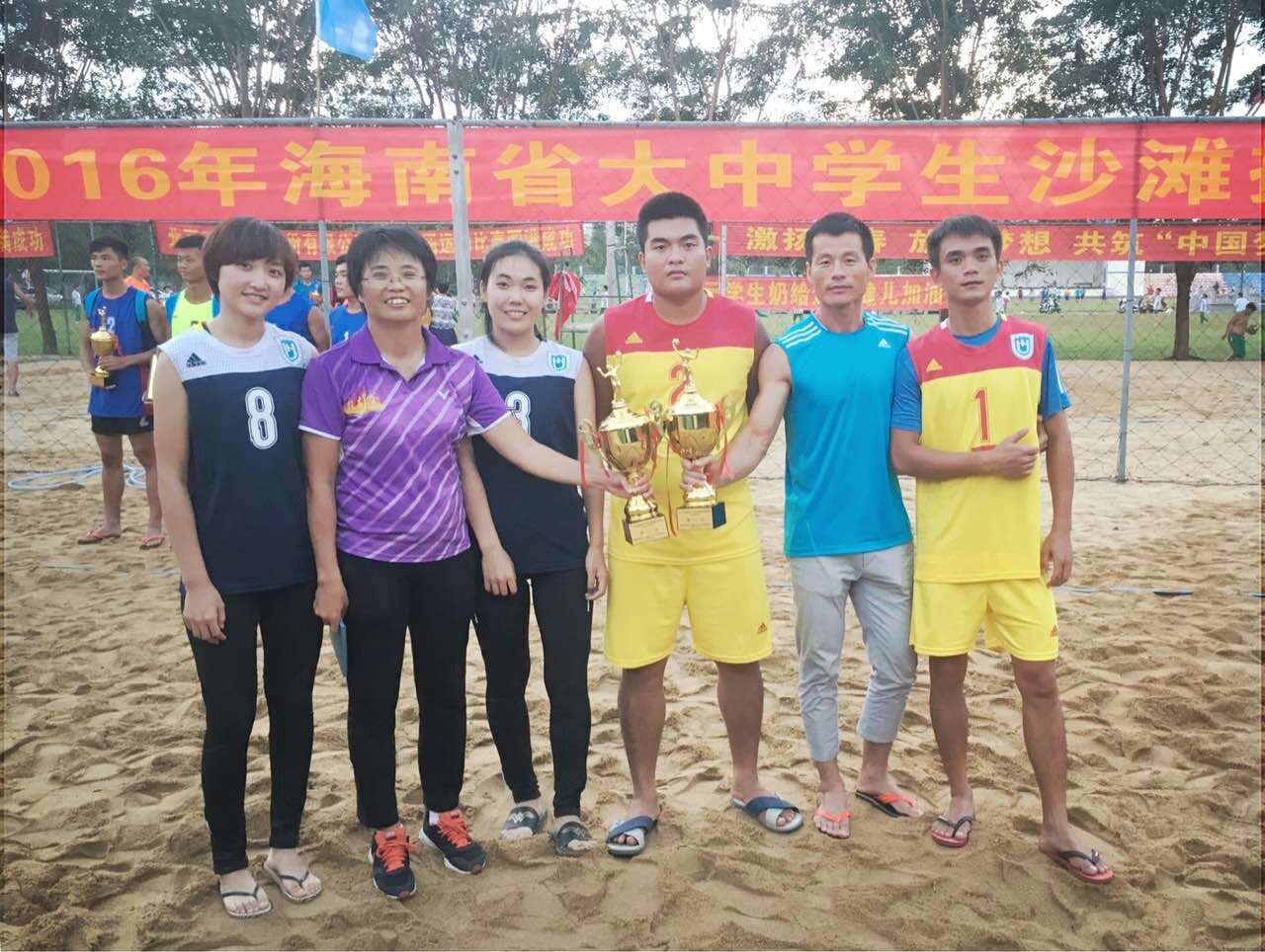 2016年海南省大学生沙滩排球锦标赛近日在琼海市海桂学校落下帷幕。金年会男女沙排在专业组比赛中顽强拼搏,充分展示了金年会运动健儿良好的精神风貌和精湛的战术水平,最终金年会男队组合(曾繁刚、刘陶欢)和女队组合(杜星、贾凡)分别以全胜的战绩获得了本届比赛专业组男女冠军。