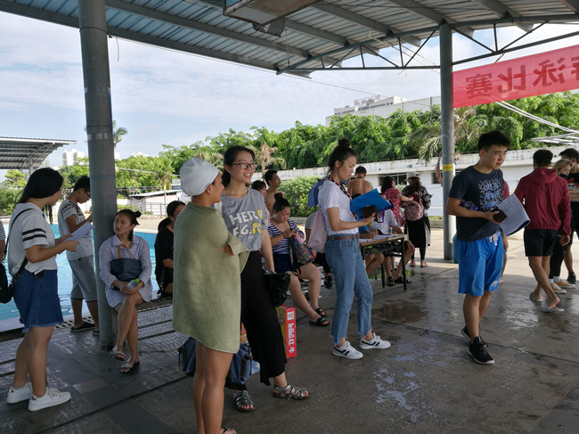 上午8:30分,比赛活动开始,体育部党总支书记陈泰豪宣布比赛开始。他希望通过游泳比赛,使金年会游泳运动得到进一步普及,促进金年会各项体育运动不断开展,增强学生、教职工的身体素质,并希望大家取得好成绩。比赛中选手们表现优异,在大学生组女子200米蛙泳比赛中,来自儋州校区热带农林学院的邱璇以33163打破原校纪录;大学生组男子200米蛙泳比赛中,来自研究生代表队的文金顺以31473打破原校纪录。他们俩成为场上众人瞩目的焦点人物,其他队员也不甘示弱,奋勇争先,夺金摘银抱铜,频传捷报。