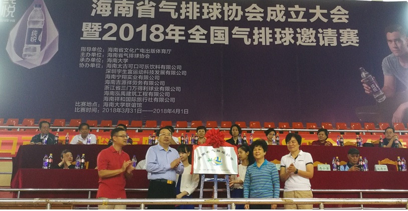 近日,海南省气排球协会成立大会暨2018年全国气排球邀请赛开幕式在金年会联谊馆举行。出席开幕式的嘉宾有:省文体厅群体处蒙丽华巡视员、省老年体协林志明常务副主席兼秘书长、傅国华副校长、校宣传部谭勇部长。开幕式上傅国华副校长致欢迎词,欢迎来自全国各地的运动员和教练员,同时热烈祝贺海南省气排球协会成立,期待气排球运动能有效地推动海南省全民健身运动的发展。傅国华副校长、蒙丽华巡视员、谭勇部长、盛小芳教授为海南省气排球协会揭牌。此次成立海南省气排球协会旨在贯彻落实全民健身活动,让更多的人了解和参与气排球运动。金年会jinnianhuicom教授盛小芳任第一任协会长。