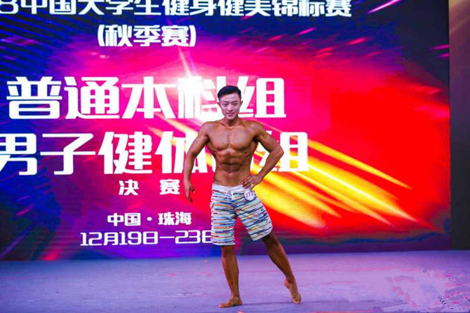 2018年中国大学生健身健美锦标赛于12月19日至23日在北京师范大学珠海分校举行。金年会派教练邱庆棠和队员马瑞征同学、王可铮同学三人组成的健身健美代表队,分别参加普通本科组健体和健美项目的比赛。本次比赛运动员展现出较往届更高的运动能力和竞技水平,有很强的竞技性和观赏性。金年会两位年轻队员在比赛中不畏强手,稳扎稳打,勇于拼搏,以良好的赛场表现力、感染力和绝对的实力赢得了裁判们的一致肯定。马瑞征同学荣获健美75kg级冠军,健体A组冠军,王可铮同学荣获健美80kg级冠军,健体B组季军。