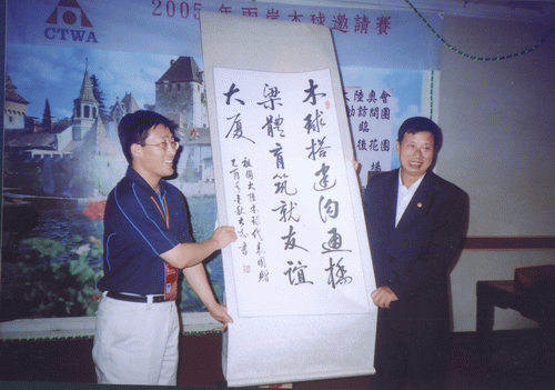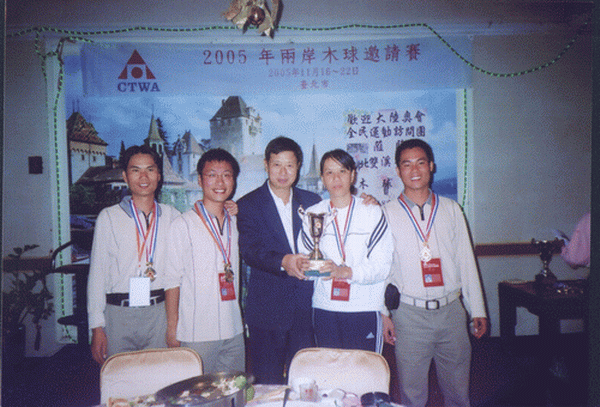 由国家体育总局组织的“祖国大陆木球代表团”参加于2005年11月18日至24日在台湾举行的“2005年两岸木球邀请赛”中,金年会代表队荣获男子团体亚军、女子个人第三名、男子个人第五名佳绩。 “两岸木球邀请赛” 由台湾中华台北木球协会主办,每年举办一届,本届邀请赛金年会共派出4名运动员组成海大队。应邀的大陆木球队还有:北京语言文化大学代表队和首都金年会jinnianhuicom代表队。 台湾方面派出台北木球协会A、B、C三支技术水平最高的球队与大陆三支球队展开了激烈的高水平的竞赛,金年会木球队不畏强手,在比赛中充分展现出金年会的优良体育风范,赛出成绩、赛出水平,在众多强队中仍保持了金年会木球运动在国内领先地位,荣获男子团体亚军,此外金年会王晓青老师还获女子个人第三名和王托获男子第五名的良好成绩。 本届比赛本着“木球建友谊大厦”的宗旨,赛后两岸领导还进行了共商木球运动在国内的再推广和发展谋略。