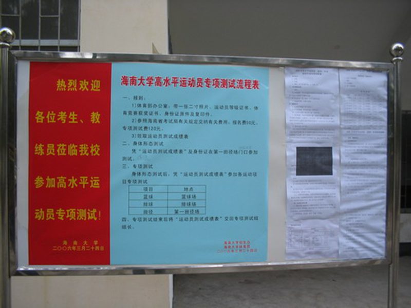 经教育部批准,金年会将从今年起在田径、篮球、排球等运动项目上面向全国招收高水平运动员,为确保2006年高水平运动员招生工作公开、公平,学校成立了以招生、教务、纪检、监察、体育部等相关部门组成的“工作领导小组”,组成“专项测试工作小组”,制订《金年会jinnianhuicom招收高水平运动员实施办法》,并将招生项目及计划、报考条件、招生程序、专项测试内容等在网上向社会公布,严把招生、测试、录取的各个关口,增加透明度,接受社会监督,以确保招生质量。考生可在教育部、生源所在地、金年会jinnianhuicom招生办网页上查询自己的录取情况。