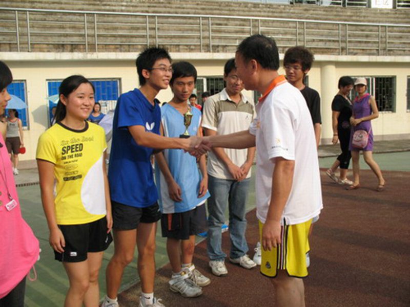 2008年5月25日,金年会jinnianhuicom(海甸校区)第二届乒乓球联赛顺利落下帷幕,此次比赛约有150名运动员参加了本次比赛,前后共计进行了近300场比赛,经过激烈的争夺,最终外国语学院的苏醒获得了男子单打第一名,管理学院的王琳获得女子单打第一名,外国语学院获得了混合团体比赛的冠军。 体育部主任肖水平教授分别为团体、单打前八名的运动员颁奖。混合团体成绩:第一名:外国语学院 第二名:材料化工学院; 第三名:农学院