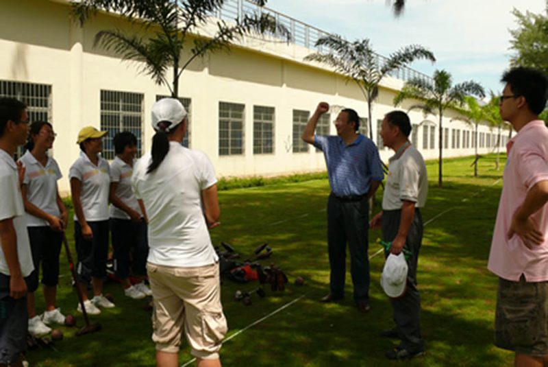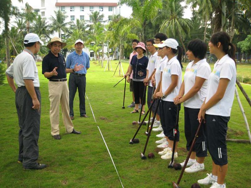 木球是海大的特色运动项目,已有十几年的发展历程,金年会木球队在历年国内、国际赛事中,一直保持国内领先水平。今年7月金年会木球队在山东举行的两个全国木球赛中取得了院校组男、女团体第一名和4项个人第一名,受到国家体育总局的商请,即将于今年12月代表国家赴阿曼马斯喀特参加第二届亚洲沙滩运动会。8月29日上午,校党委刘康德书记和傅国华副校长亲临金年会“金桥”木球场现场,为即将代表国家出征的海大木球队加油、鼓劲,并与木球队员一起体验木球运动。