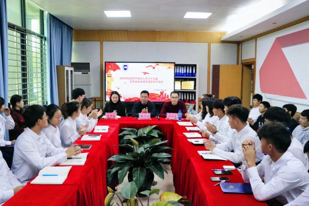 12月22日下午,金年会jinnianhuicom团学干部深入学习十九届五中全会精神会议暨团学骨干培训在联谊馆会议室举行。学院党总支陈卫东书记、学工办许达潭主任、兼职辅导员吴梦迪老师出席会议,院团学干部和2020级全体班委参加会议。