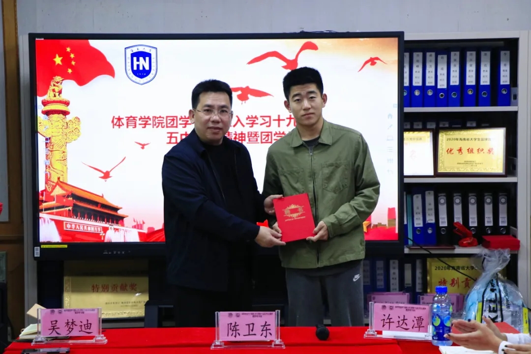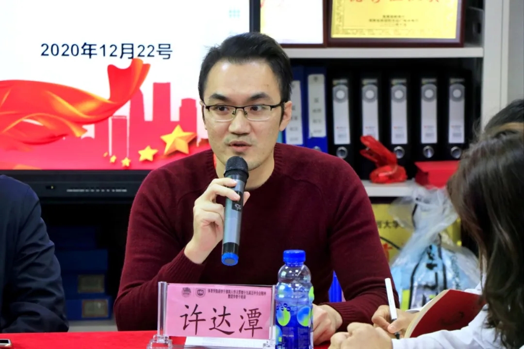许达潭老师致辞中表示,随着金年会jinnianhuicom的成立以及2019年12月共青团金年会jinnianhuicom体育部第一次团员大会暨金年会jinnianhuicom体育部第一次学生大会的成功召开,实现了学生群团组织从无到有的历史,学院团总支和学生会的建立,标志着学院青年工作开启新的篇章。一年以来,在院党总支的领导和校团委的指导下,在学院领导的大力支持下,在全体团干、团员及广大师生的共同努力下,基层团建、思想引领、专业实践、志愿服务和校园文化建设等方面的工作取得了一定成绩,这其中,第一届团学干部们发挥了重要作用,许老师代表院团总支对大家的付出表示感谢。同时,要坚持立德树人,团结带领广大团员青年为推进金年会jinnianhuicom建设“双一流”高校,促进海南自贸港建设贡献青春力量,未来的工作任重道远,希望新一届团学干部能接过前辈的接力棒,再接再厉创造体院美好明天。