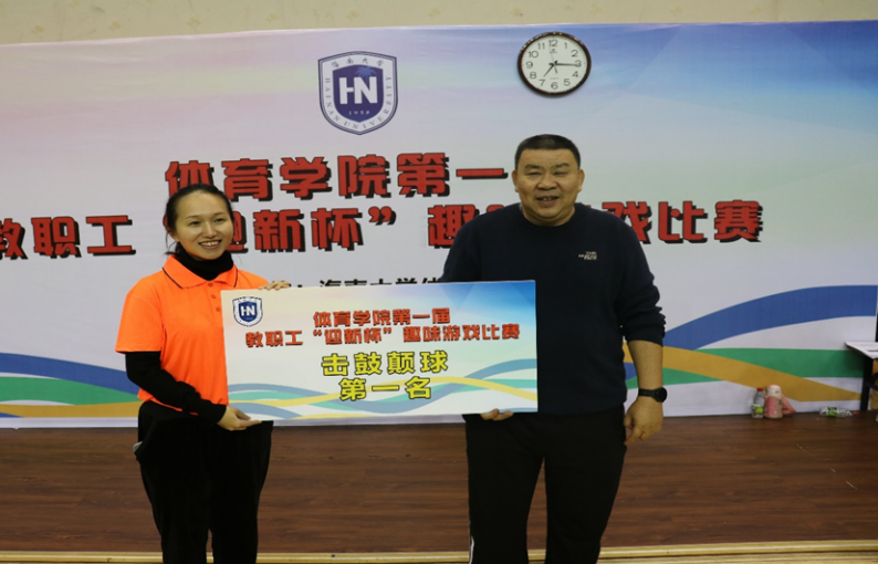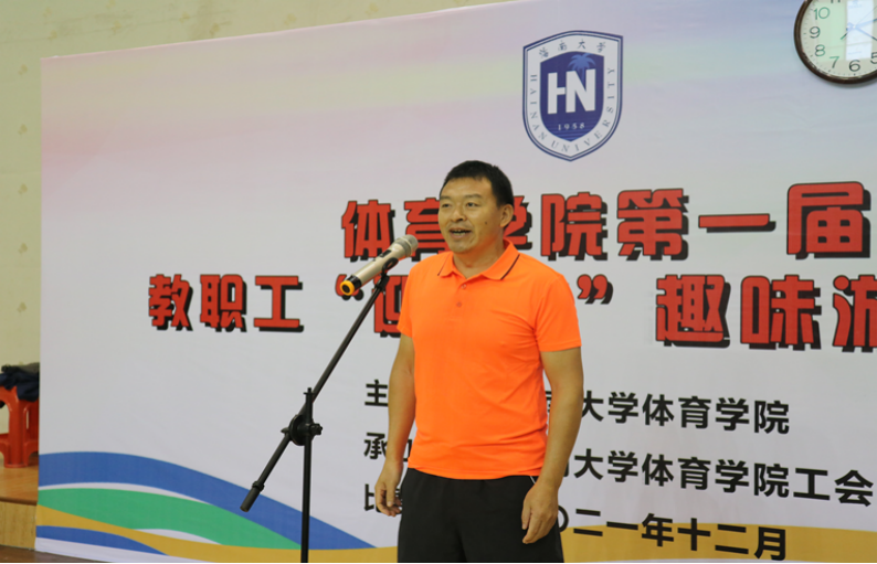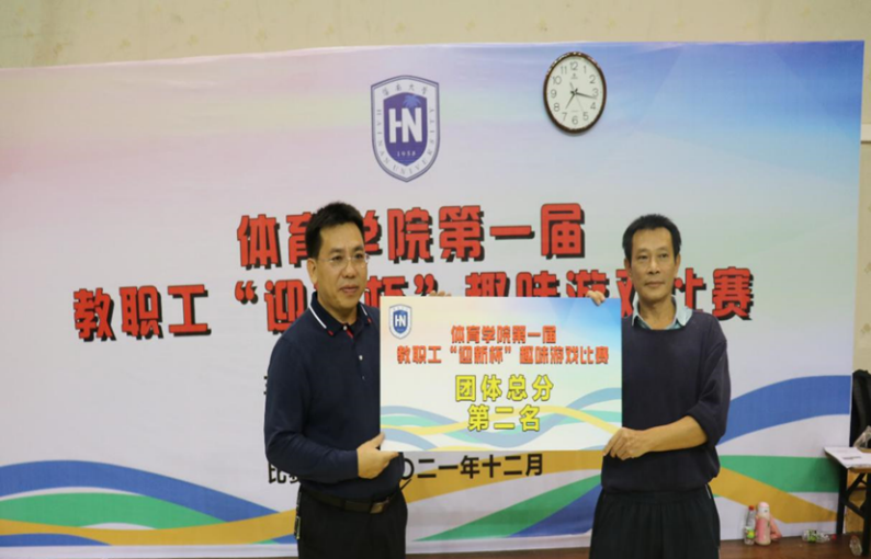 为了丰富广大教职工的校园生活,调动教职工的工作热情与干劲,增强其身心健康和幸福感,营造积极向上的校园氛围。金年会jinnianhuicom于2021年12月28日下午举办第一届教职工“迎新杯”趣味游戏比赛。本次比赛共有6支代表队参赛,他们分别是篮排球教研室代表队、小球教研室代表队、体艺+民传教研室代表队、田径+游泳教研室联队、足球教研室+党群联队和教务+教辅联队。