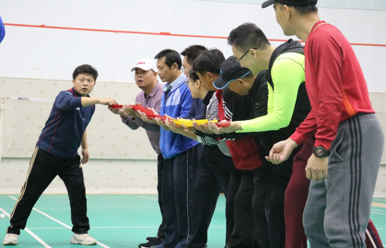 “趣味羽毛球”环节里,选手们斗志昂扬、勇于拼搏,教职工们在赛场上舞动着球拍,挥洒着汗水展现了教职工的青春活力。