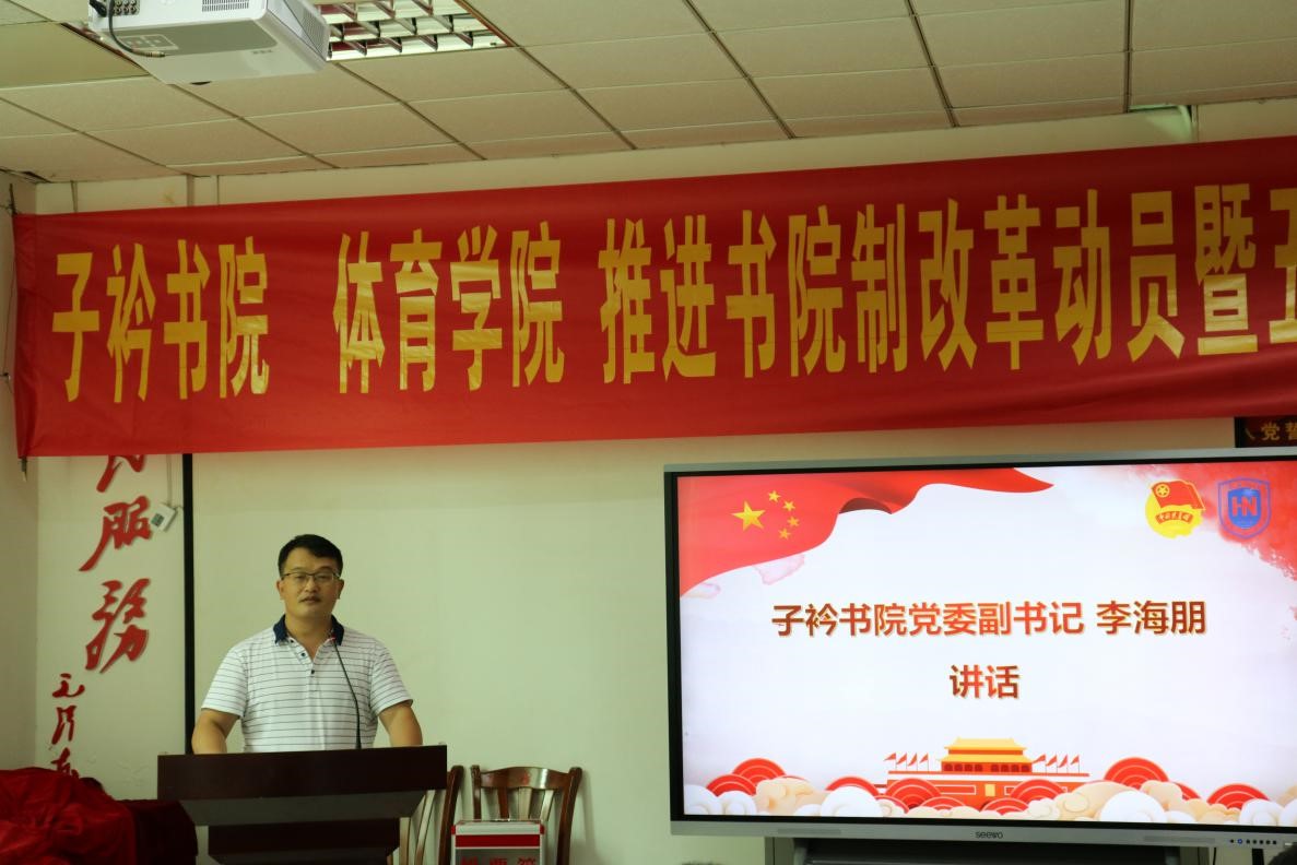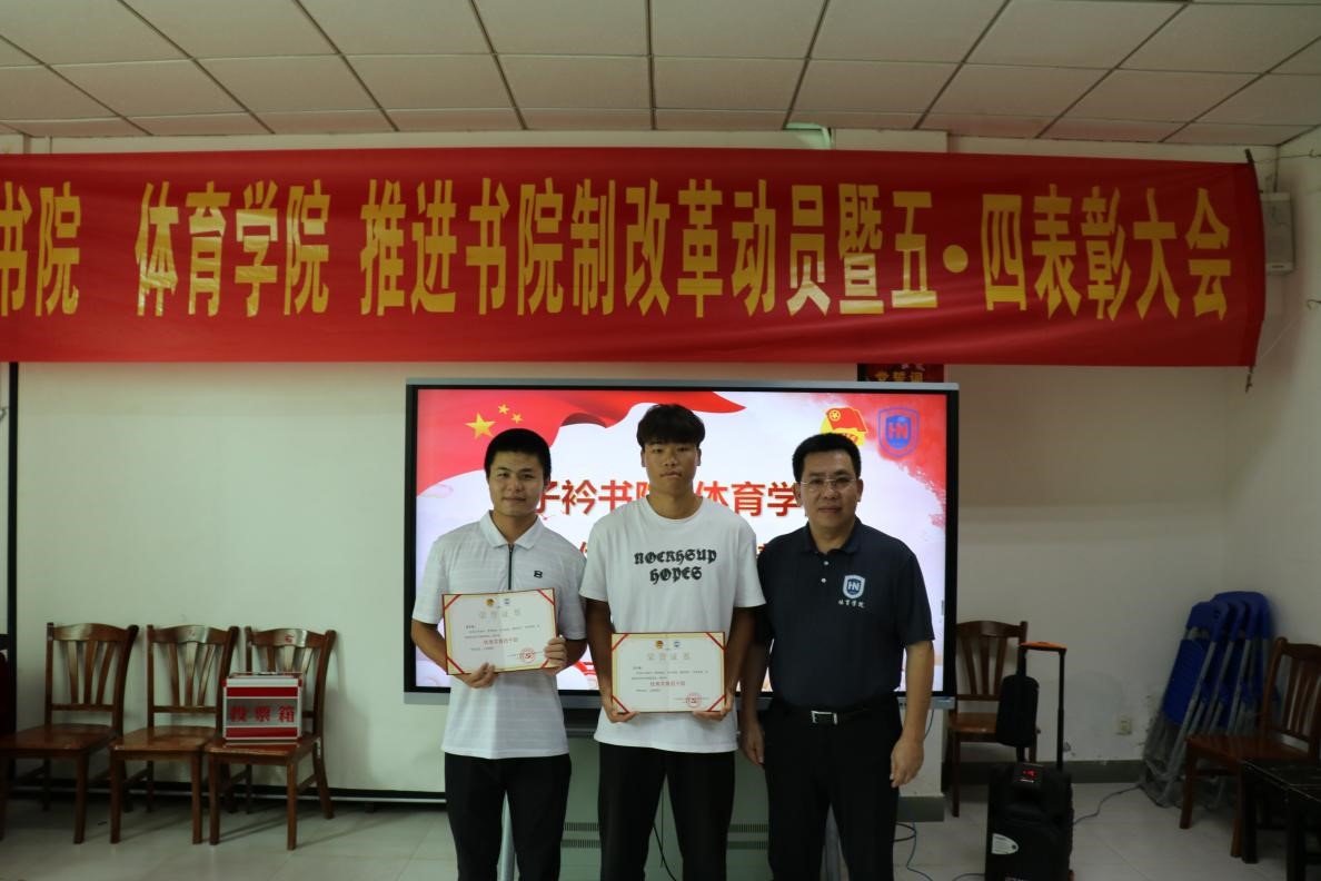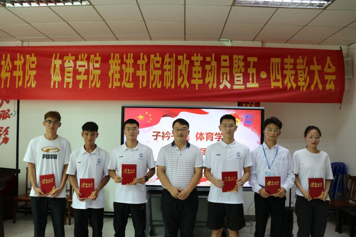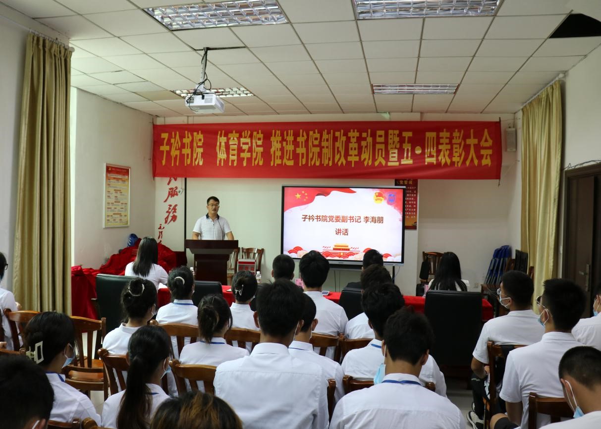 在全省第八次党代会胜利闭幕、共产主义青年团成立100周年、迎接党的二十大胜利召开之际,在学校全面推进书院制改革、学分制改革和协同创新中心改革之时,为增进学生对书院制改革政策及推进情况的认识,激励广大青年学子继承和发扬五·四精神、开拓创新、担当作为,5月11日上午,子衿书院 金年会jinnianhuicom推进书院制改革动员暨五·四表彰大会于联谊馆党员之家举行。金年会jinnianhuicom党总支书记陈卫东、子衿书院党委副书记李海朋(主持党委工作)、体育学院团总支书记许达潭、辅导员谢淑婷、兼职辅导员吴梦迪出席大会,各班班委、团学主要干部及学生代表参与大会,本次大会由辅导员谢淑婷主持。