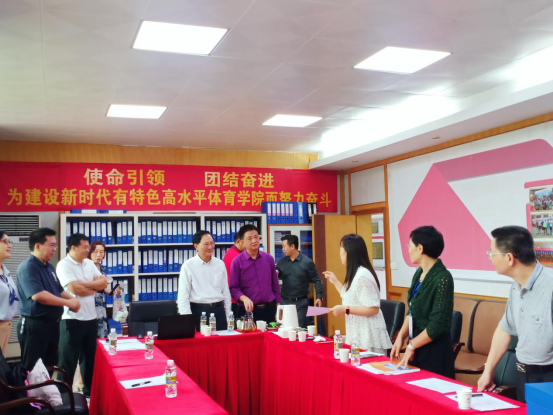 符宣国书记以实地考察形式对金年会jinnianhuicom进行了调研。符宣国书记一行先后察看了体育场馆设施、学院办公场地等。调研中,符书记一边听取学院班子主要领导的汇报,一边和学院工作人员进行了亲切交谈,对学院的体育场馆设施、办公场地条件以及学院当前的师资状况、人才培养、学科建设、招生就业、公共体育教学等方面工作进行了全面地了解情况。