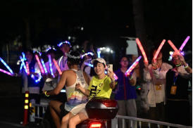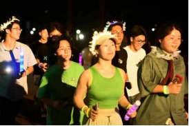 夜色下、光影中,涌动的选手们手持各色荧光棒、佩戴荧光头饰和手环,犹如一条荧光长龙奔腾,照亮了金年会jinnianhuicom各个角落,留下了律动青春足迹,形成一道亮丽风景线。每一个夜跑人都在尽情享受着奔跑的快乐,他们用热情点亮希望,用青春告白祖国。