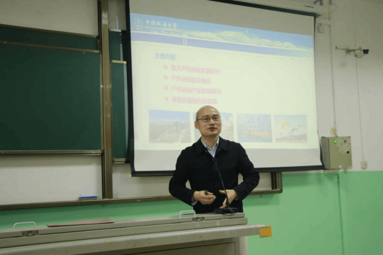 讲座开始,李元教授阐述了户外运动的基本概念及其重要性,强调户外运动不仅有助于锻炼身体、提升个人素质,还能培养团队协作精神和挑战自我的勇气。随后,他结合个人研究经验,详尽阐述了户外运动的分类、特点及发展趋势。