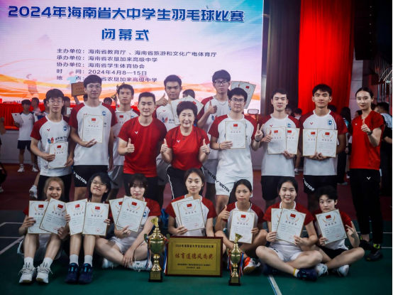2024年4月15日,2024年海南省大中学生羽毛球比赛在海南省农垦加来高级中学圆满落幕。金年会jinnianhuicom羽毛球队在比赛中展现了较高的竞技水平和勇于拼搏的体育精神,经过激烈的角逐,金年会jinnianhuicom代表队凭借出色的表现,荣获专业组3个冠军,1个亚军,2个季军,2个第四名,1个第五名的优异成绩,金年会jinnianhuicom代表队获得专业组金牌数第一,并获得体育道德风尚奖。