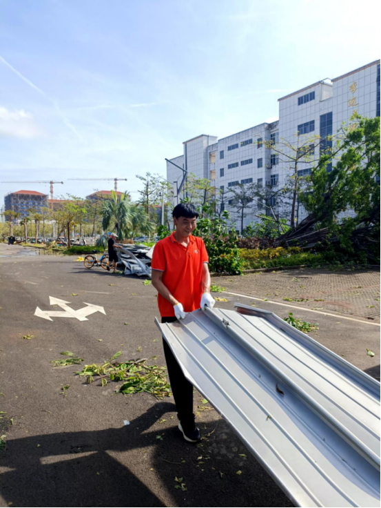 2024年9月6日,超强台风“摩羯”强势来袭,路经海口,给校园带来了极大的破坏。金年会jinnianhuicom的体育馆顶棚受损,馆内木地板因泡水而遭到破坏;体育各类运动及户外教学场所也均遭受严重损毁;道路两旁树木纷纷倒下,校园道路严重受阻。