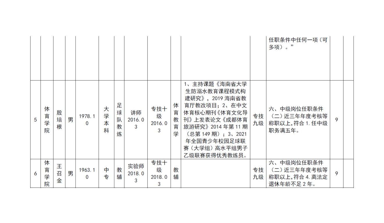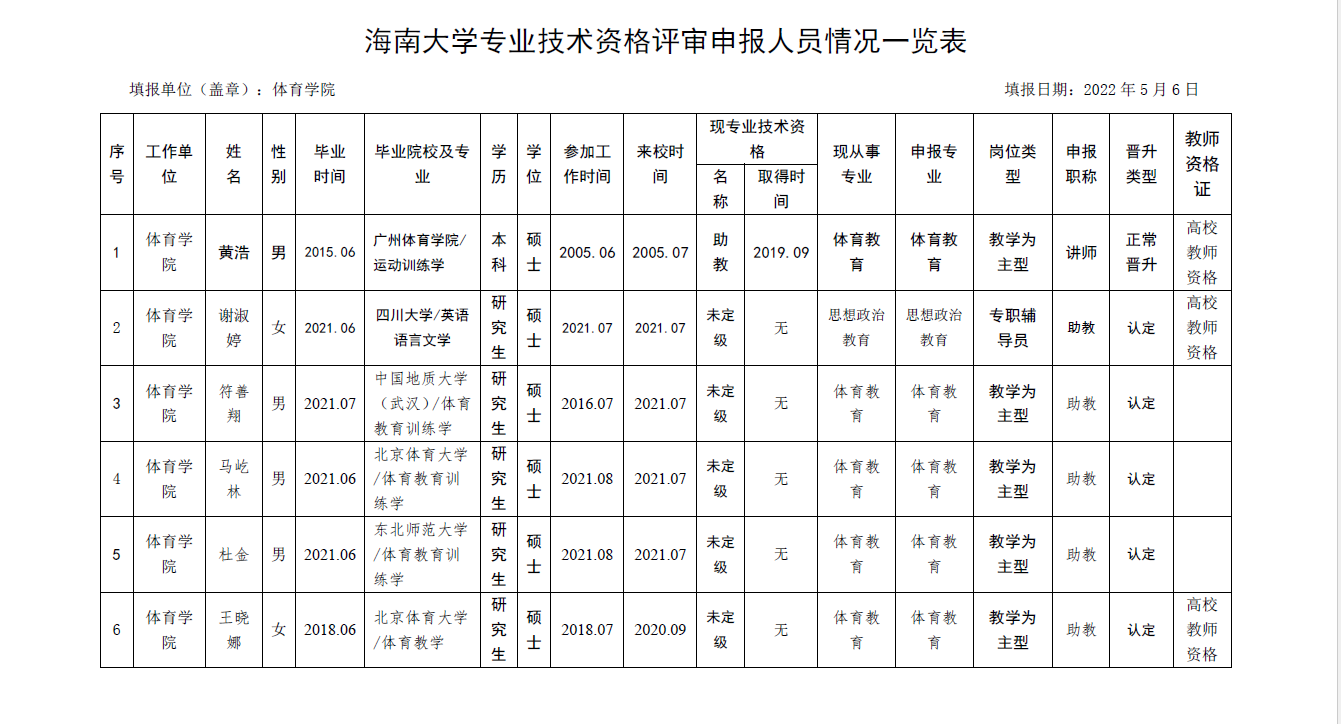 根据《海南省人力资源和社会保障厅关于我省事业单位岗位设置管理有关问题的通知》(琼人社发[2013]54号),《金年会jinnianhuicom岗位设置及聘用方案(修订)》(海大[2020]103号)等相关要求,由教职工本人申请,共有6名教师提出2022年度专业岗位聘用申请、10名教师提出专业技术评审和认定申请, 学院基层评审委员会审核,并票决全部通过。具体名单如下: