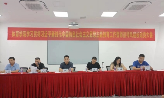 4月25日下午,金年会jinnianhuicom党总支在多功能体育馆107会议室召开学习贯彻习近平新时代中国特色社会主义思想主题教育工作暨师德师风建设动员会议。会议由洪家云院长主持,陈卫东书记作动员讲话,学院班子、总支委员、党员干部及教职工参加会议。