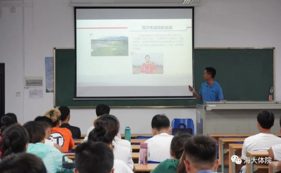 9月16日下午,学院特邀请中国高尔夫球协会国际级裁判员、海南高尔夫球协会副秘书长、教授陈盛炽、嘉世击剑培训中心的馆长王嘉亮、壹觉体育高尔夫教学导师吴祖昕为金年会jinnianhuicom2019级休闲体育专业学生开设一场高尔夫球讲座。