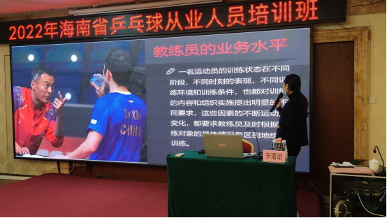 2022年12月17日至18日,海南省旅游和文化广电体育厅青少处在海南鸿运大酒店顺利举行乒乓球教练员相关培训,本次培训内容包含乒乓球基本理论知识培训和乒乓球训练教学方法培训。本次培训班,旨在推广乒乓球教练知识,提高乒乓球教练员水平,同时带动更多的运动爱好者参与到乒乓球运动中来,积极推广乒乓球运动的开展。金年会jinnianhuicom也积极支持,为金年会jinnianhuicom休闲体育专业学生争取到了一定的参会名额,部分休闲体育专业学生到会参与培训讲座,同时金年会jinnianhuicom乒乓球专项导师李璠珺教师也受邀担任本次乒乓球技能理论和训练模式培训板块的主讲教师。