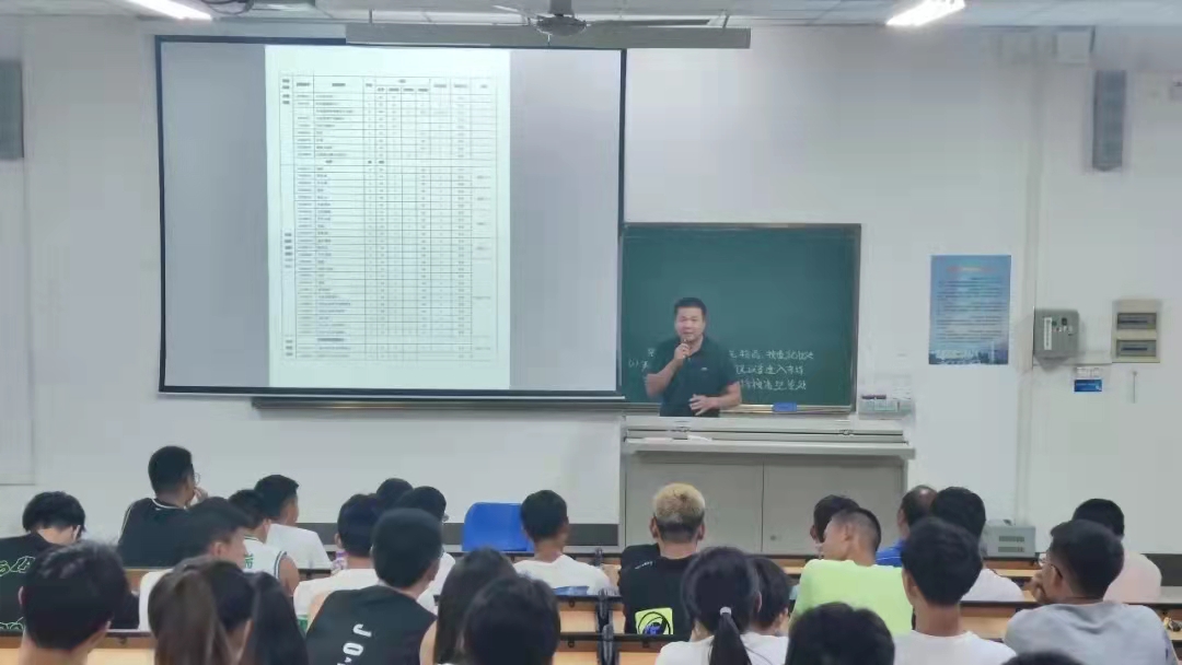 张泽承老师介绍了国内户外拓展运动的发展状况和专业内容,户外拓展运动涵盖户外运动心理学、野外生存、 攀岩、 定向越野、 户外营销、户外徒步、体验培训教育等多方面专业技术知识,并结合海南的地理优势和生态环境,着重突出该领域在我省享有的得天独厚的优势和广阔的发展前景,鼓励同学们积极投身其中,必然会获得专项技能的进步和良好的就业前景。希望在下一学期,同学们通过体验式学习,提升专业技能,强化个人心理素质,培养团队合作精神,感受现代社会挑战。