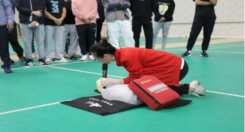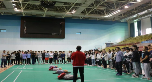 为保障学生们体育锻炼时的安全,提高同学们遇到突发事件应急处置能力,掌握安全急救知识,11月10日下午,金年会jinnianhuicom组织19级、20级学生于联谊馆羽毛球场进行心肺复苏和自动体外除颤器(AED)使用培训。校医院医生曾美青和邱卫红莅临现场进行指导。