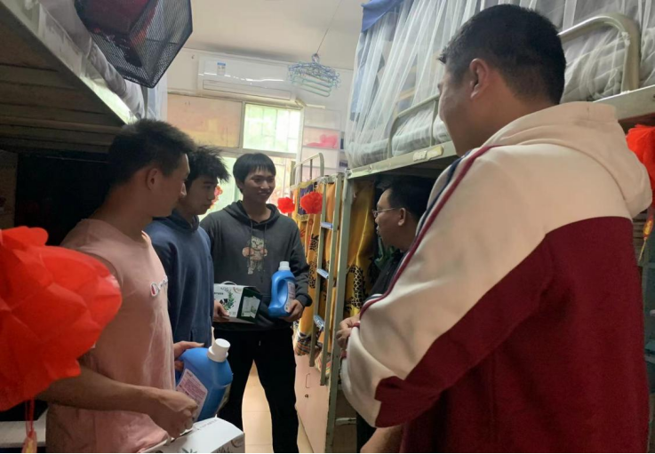 为促进学生身心健康成长,解决困难生面临的实际困难,切实开展“六帮”专项行动。3月1日中午12:00,在金年会jinnianhuicom党总支书记陈卫东的带领下,学工办主任许达谭、班主任张旭辉、孙吉成、高子岩、赵帅、黄浩、陈先俊和辅导员谢淑婷深入学生宿舍开展困难生慰问活动,为16名困难生送上春日关怀礼包。