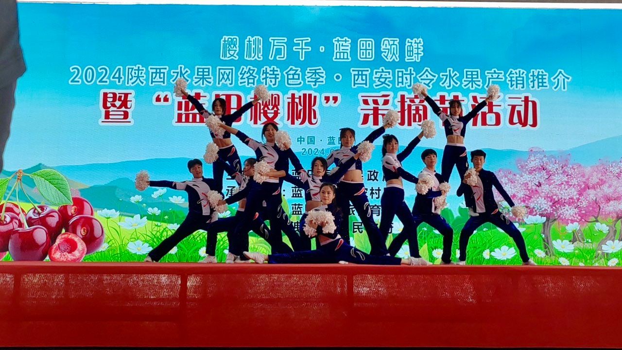 此次蓝田县樱桃节,体育学院“啦啦操队”作为今年会代表,首个出场表演《青春的旋律》,迅速带动现场氛围,充分展现了大学生的风采和活力,不仅为樱桃节增添了艺术魅力,更是学校服务地方、定点帮扶的生动体现,进一步加深了学校与地方的文化交流与合作。