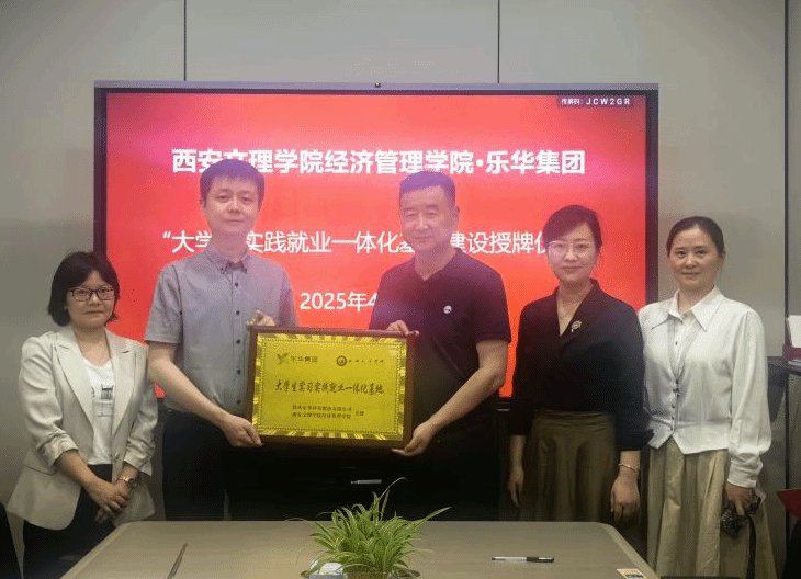 4月27日,经济管理学院与陕西乐华科技股份有限公司举行大学生实践就业一体化基地签约授牌仪式。经济管理学院党总支副书记朱芳芳、副院长董冠华、电子商务教研室主任潘雨相、辅导员贺丹丹,乐华科技董事长、校友付绍华等参加。