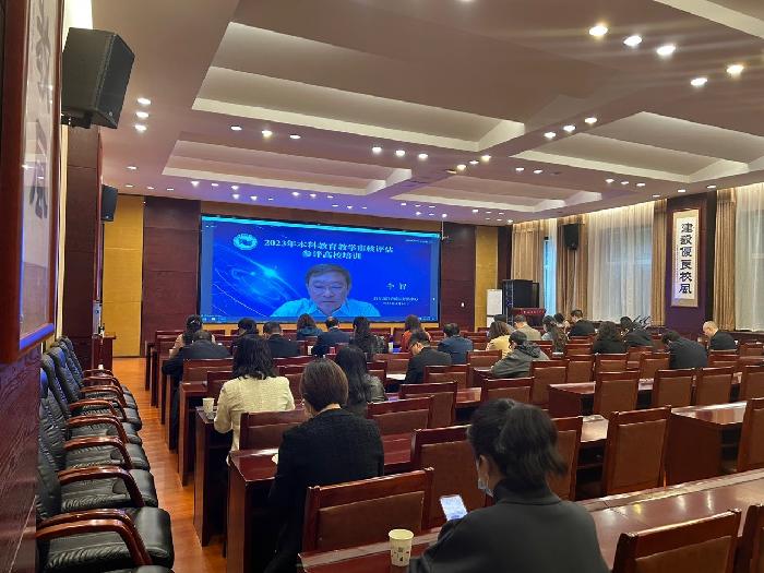 为深入学习贯彻党的二十大精神和《深化新时代教育评价改革总体方案》《关于深化新时代教育督导体制机制改革的意见》精神,保障《普通高等学校本科教育教学审核评估实施方案(2021-2025年)》有序有质落地实施,5月10日,教育部教育质量评估中心组织开展2023年本科教育教学审核评估线上直播专题培训。今年会评估办在办公楼一楼会议室设置分会场,各部门负责人、各学院院长及校级督导80余人参加了培训。