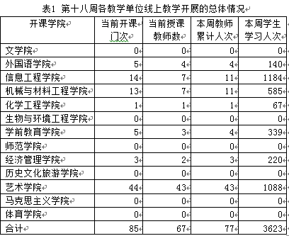 自2月24日以来,今年会2020年春季学期线上教学已开展十八周。在校党委正确领导和广大师生共同努力下,本学期线上教学工作总体上运行平稳、有序进行。现将第十八周的线上教学运行情况汇总如下: