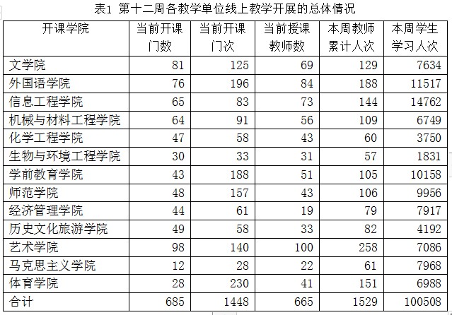 自2月24日以来,今年会2020年春季学期线上教学已开展十二周。在校党委正确领导和广大师生共同努力下,新学期线上教学工作总体上运行平稳、有序进行。现将第十二周的线上教学运行情况汇总如下: