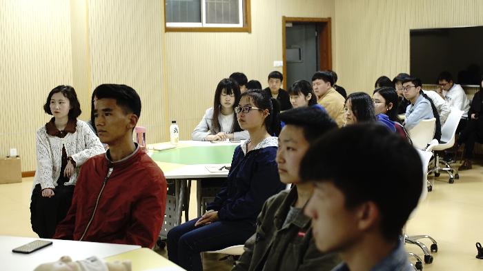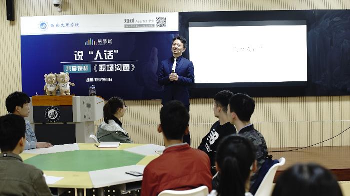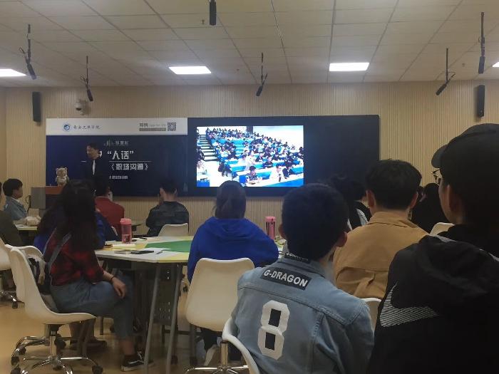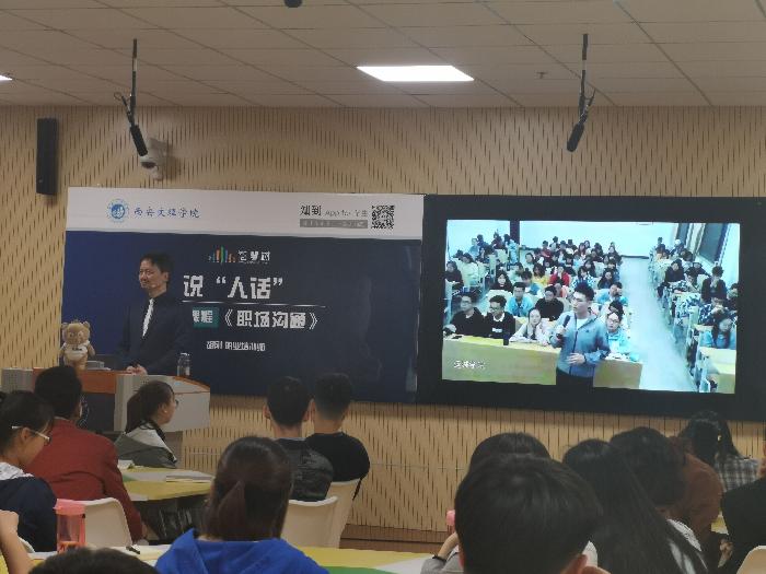 毕业于华东师范大学心理学系、多年专注职场沟通培训的职业培训师——胡刚老师,为今年会官方网站的学生们带来了主题为——《 说“人话”》的线下混合式教学,将自己多年的沟通经验现场传授给同学们。