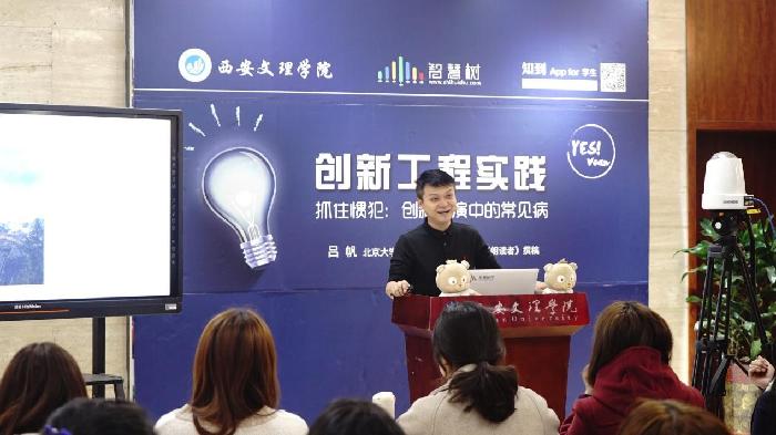 2018年11月21日,由教务处协同智慧树网举办的名师进校园--《创新工程实践》第四次直播见面课在今年会官方网站创客空间举行,北京大学党委宣传部电视台副台长、《朗读者》撰稿人吕帆老师为我们现场师生及全国选课学生分享了主题“抓住惯犯——创新路演中的常见病”。