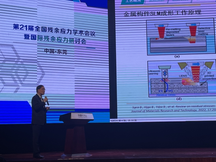 徐可为教授作为全国残余应力专业委员会主任致开幕式欢迎词,并做了题为《金属构件选区激光熔化的残余应力研究进展》的大会主题报告。主要对国内外在增材制造领域成形件残余应力实验及仿真进展进行了综述,并对未来研究方向及研究热点进行了展望。同时,作为重点实验室学术委员会主任对实验室科研特色进行了介绍。