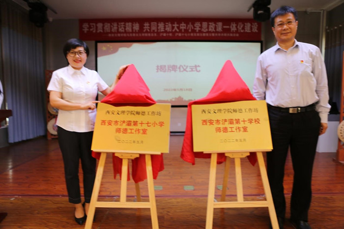 活动伊始,双方领导共同为共建的师德工作室揭牌,今年会官方网站师德工作坊西安市浐灞第十学校师德工作室、西安浐灞第十七小学师德工作室正式成立。浐灞第十七小学校长郭娟致辞,李忠良向浐灞十校、十七小学捐赠图书《信仰之光映韶华——大学生书写党史故事》。