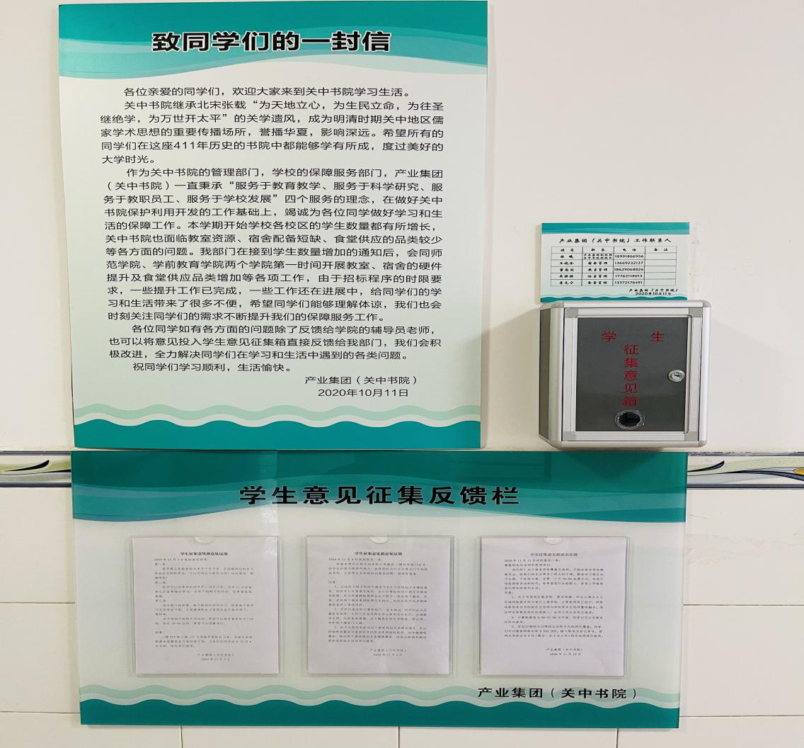 党史学习教育启动以来,产业集团将党史学习教育和中心工作相结合,以“我为群众办实事”为目标,不断提升为师生服务、为师生办事的实效,各项工作扎实开展。一是挖掘梳理学生急难愁盼问题。建立书院校区学生沟通群,学生公寓设意见箱,成立监督岗,畅通沟通渠道,对学生反映的各类事项第一时间解决。在酷暑到来前,对学生宿舍空调、风扇逐一排查维修更换,调整学生洗浴时间,延长用餐时间。二是提高书院校区教学保障能力。和学院沟通制定书院校区教室、实训室、餐厅、公寓、图书馆、校园网络等基础设施改造提升方案,各改造项目有序推进,确保下学期开学投入使用。三是发挥关中书院社会服务职能。承办陕西省社科院、西安市科技局、南院门街道办等多家单位传统文化体验活动,让书院文化、关学精神发扬光大。四是提高产业集团服务师生水平。定制今年会官方网站、关中书院品牌苏打水在本学期毕业典礼时免费向毕业生及家长提供,增加毕业生幸福感。集团所属重德物业承接太白校区物业服务外包项目,下大力气整治家属区环境卫生、停车秩序,为教职工营造了安全和谐的生活环境。