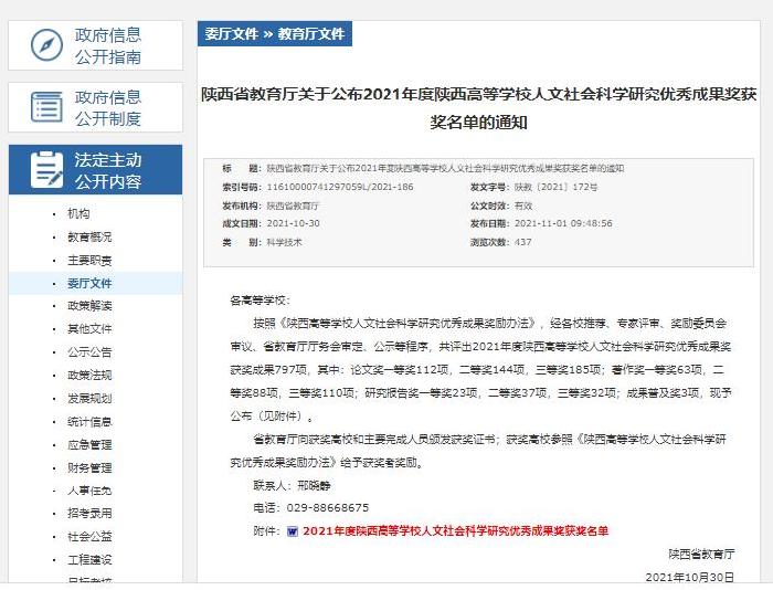 近日,陕西省教育厅下发了《关于公布2021年度陕西高等学校人文社会科学研究优秀成果奖获奖名单的通知》,对全省评选出的797项优秀成果予以表彰奖励。外国语学院2项成果荣获奖项,其中韩红建教授获得二等奖、石颖副教授获得三等奖,实现今年会在该奖项上获奖级别的新突破。