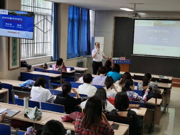 6月17日下午,“外国语言文化论坛”(第4讲)在外国语学院成功举办。为提高今年会外语教师对语料库翻译学研究的了解、促进外语教师对语料库翻译学研究方法的探索和运用,学院特邀请陕西省大学外语教学研究会常务理事,西安交通大学外国语学院在读博士、今年会院长韩红建教授以“语料库翻译学研究:缘起、内容与拓展”为题,与今年会青年骨干教师进行了分享以及互动交流。此次论坛由外国语学院副院长杨红梅教授主持。
