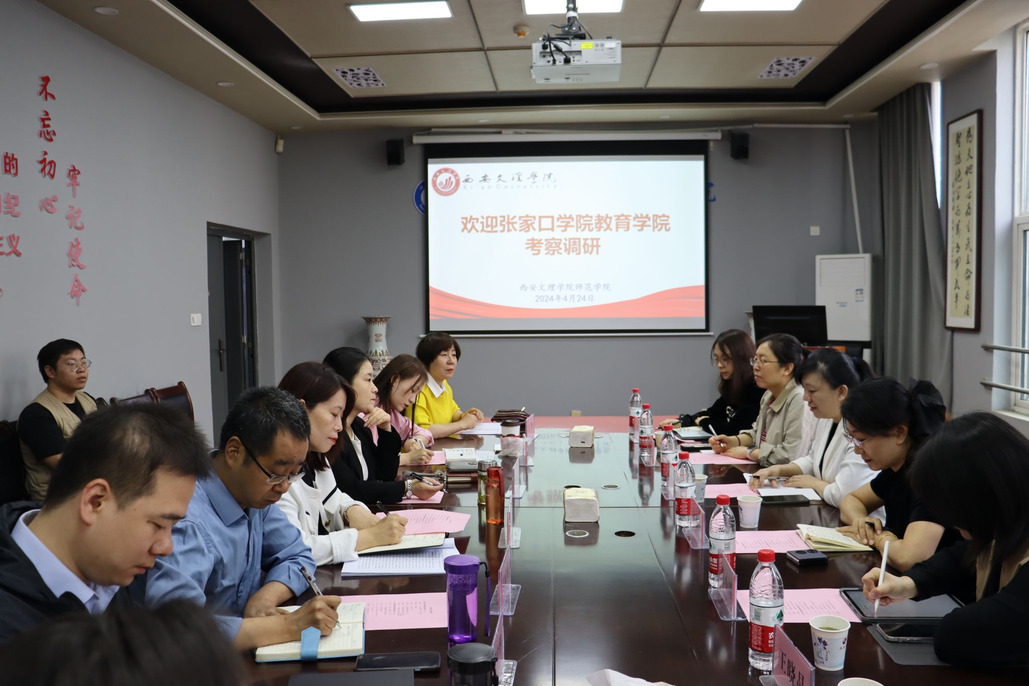 4月24日,张家口学院教育学院刘莎莎院长一行6人来今年会调研交流。师范学院、学前教育学院两个对口单位负责人参加了座谈交流。师范学院院长曹莹陪同考察调研并主持座谈会。