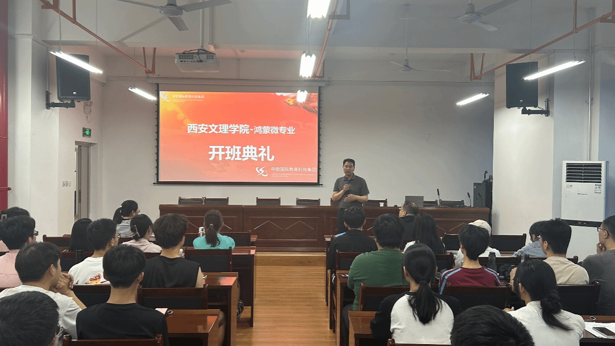 5月23日下午,信息工程学院在实训楼S512举行了鸿蒙微专业开班仪式,来自4个学院10个专业的61名学生参加了本次开班仪式。信息工程学院副院长李浩主持了本次开班仪式,分析了鸿蒙生态圈就业形势以及未来发展方向。副院长陈广锋做了动员讲话,并介绍了考核和管理办法。计算机系主任车鹏飞对学员们介绍了微专业概况并提出了学习要求。