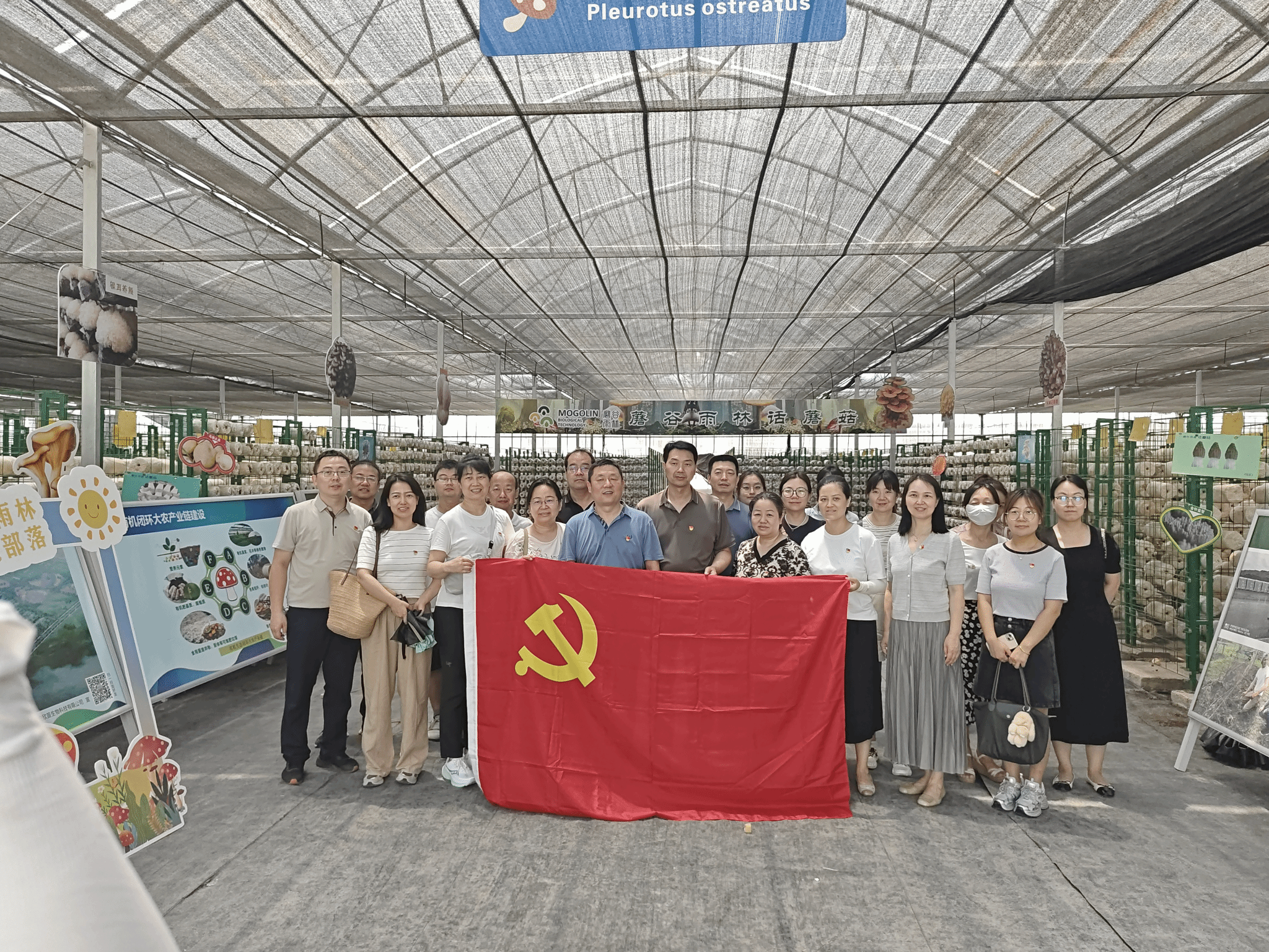 活动第二站,大家来到了西安欣苗生物科技有限公司。在王峥嵘总经理的陪同下,党员代表先后参观了菌包培养中心、食用菌现代化智慧接种室及实地生产基地,食用菌的生产研发、菌渣处理、使用菌多糖提取等情况。随后,教师党员代表高强博士,结合自身研究,作了题为“数据要素X,智慧农业助力乡村产业振兴”党课分享。与会人员就构建“企业出题,高校解题”的产学研模式进行了座谈交流。在交流中,王向阳书记指出,实现产学研科研成果转化,各位教师党员要深入企业,精准把握企业需求,把论文写在祖国大地上,把科技成果应用在实现现代化的伟大事业中。