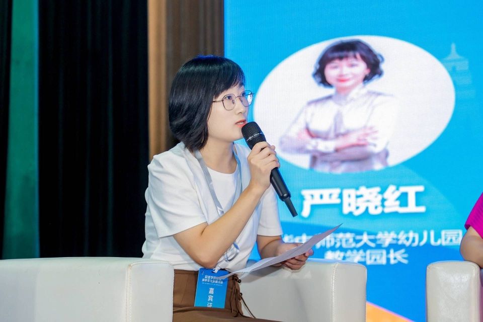 蔡军在会上作了题为《幼儿园课程建设的内在逻辑与实践路径》的大会报告,分享在高质量发展背景下关于幼儿园课程建设的辩证性思考和探究式成果。杨琼主持《守护育幼底线 成就美好童年”主题案例分享及策略研究》圆桌论坛。